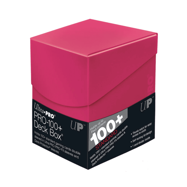Las ECLIPSE® PRO 100+ Deck Box de Ultra PRO son una solución compacta y funcional para almacenar y proteger hasta 110 cartas de tamaño estándar enfundadas. Su diseño resistente las hace ideales para el transporte y la organización de mazos valiosos, manteniendo las cartas seguras en todo momento (no incluye cartas ni fundas).